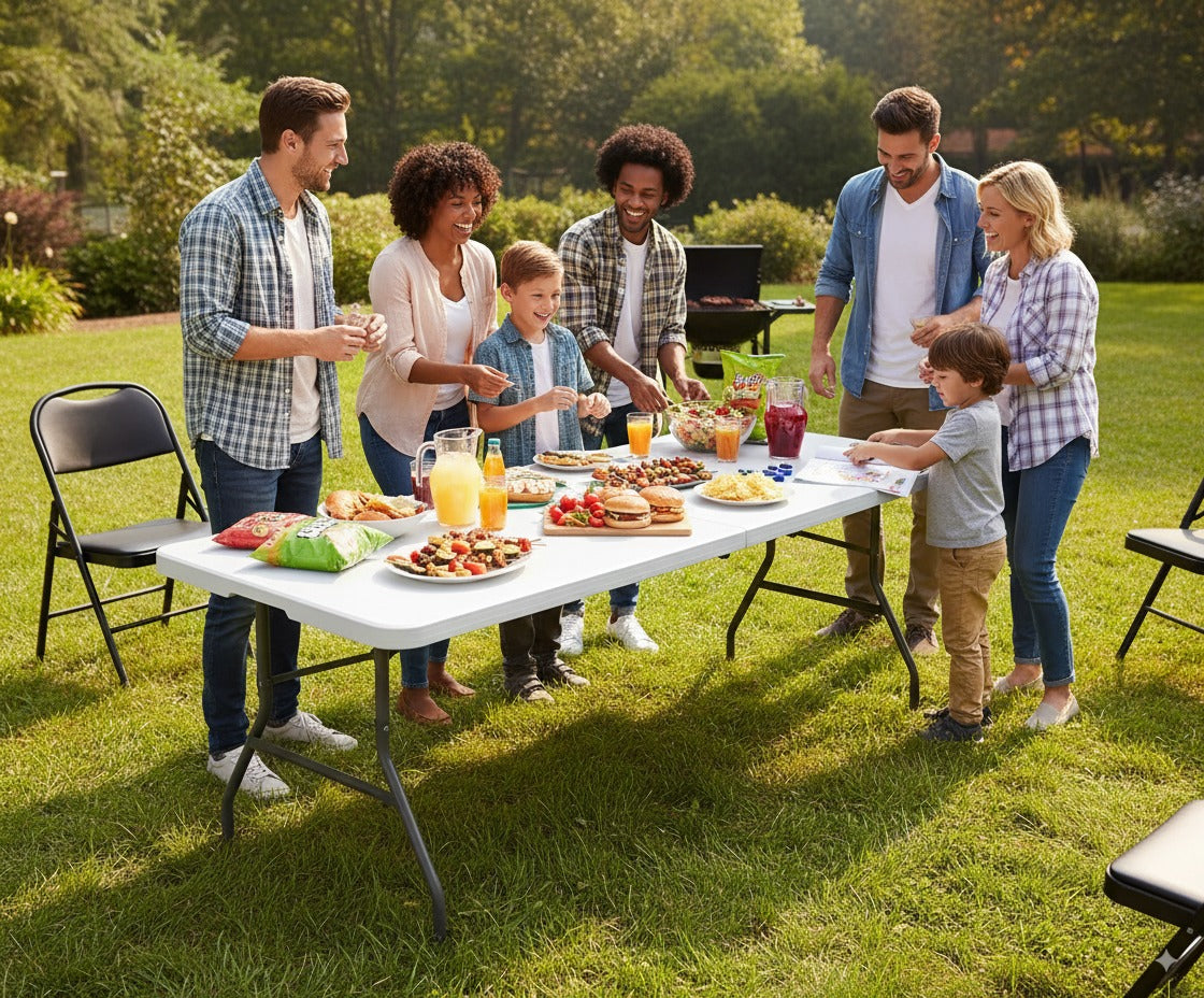 Adecuada como mesa Auxiliar para el interior o exterior del hogar, para recibir invitados adicionales, acampar, fiestas, picnics, eventos y más.
